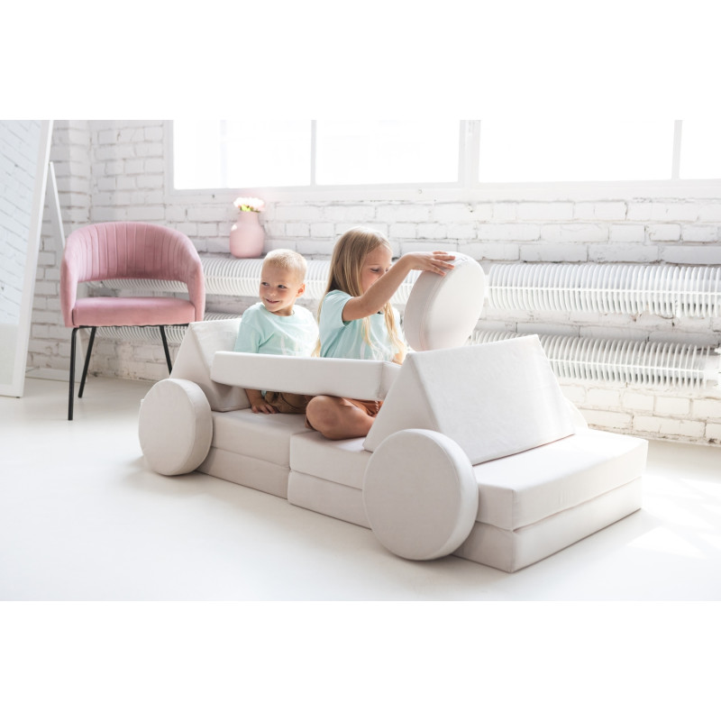 Mais le canapé modulaire Velinda n'est pas seulement un meuble fonctionnel. Il se compose de 10 éléments qui, comme des blocs, peuvent être librement combinés avec les autres, en créant diverses structures selon leurs propres besoins. À partir de meubles (fauteuil, lit, chaise longue, pouf, etc.), l'enfant peut construire ses propres véhicules (voiture, fusée, excavatrice, etc.) et créer des bâtiments recherchés. Après tout, l'imagination des enfants ne connaît pas de limites.