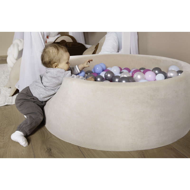 Il completo comprende: piscina secca, borsa per le palline, 200 palline testate di materiale non nocivo con diametro di 7 centimetri
